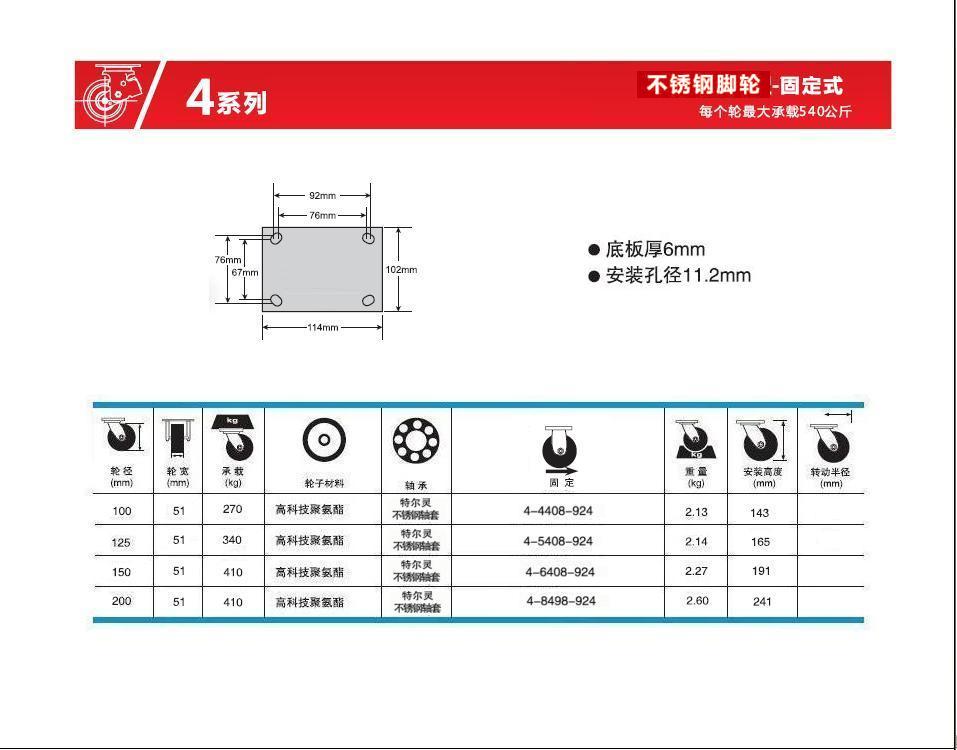 | 类 型: | 不锈钢脚轮(80-450Kg) |
