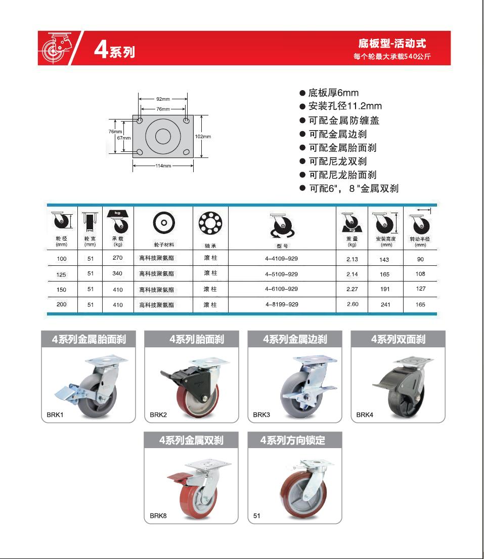 轮    径: 4寸(100mm)、5寸(125mm)、6寸(150mm)、8寸(200mm)、
