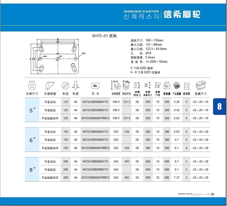 | 轮 径: | 5寸(125mm)、6寸(150mm)、8寸(200mm) |