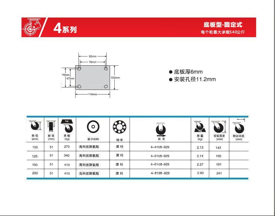 | 轮 径: | 4寸(100mm)、5寸(125mm)、6寸(150mm)、8寸(200mm)、 |