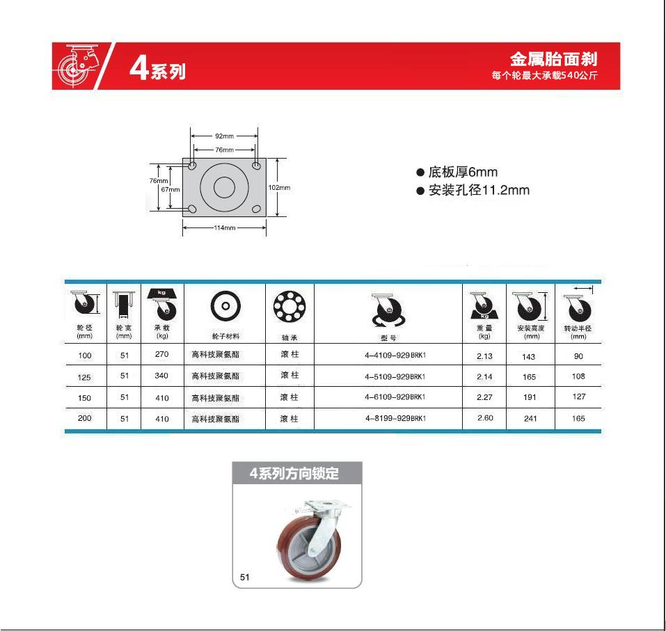 | 轮 径: | 4寸(100mm)、5寸(125mm)、6寸(150mm)、8寸(200mm)、 |