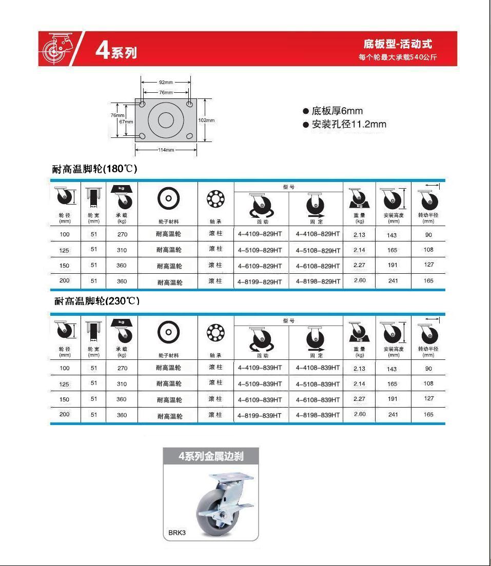 | 类 型: | 耐高温脚轮(80-360Kg) |