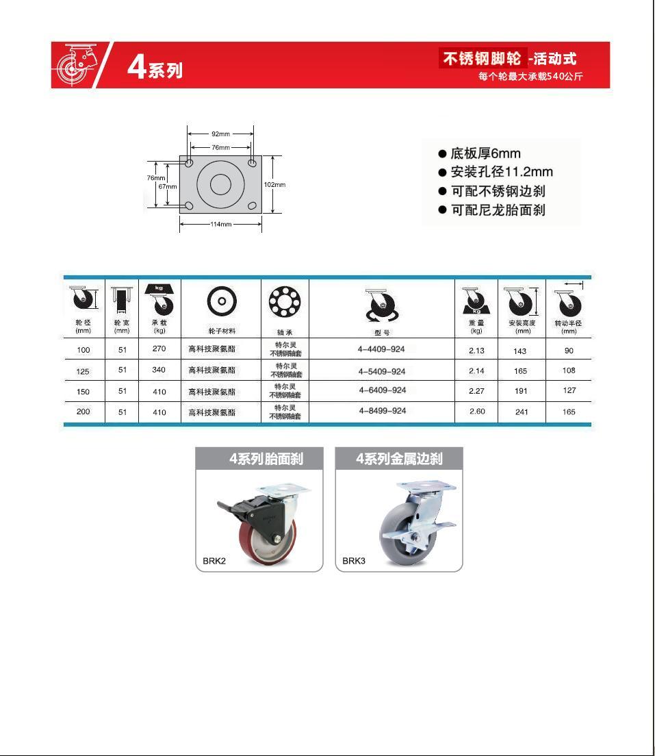 | 类 型: | 不锈钢脚轮(80-450Kg) |