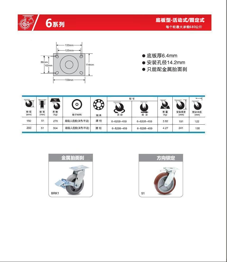 | 轮 径: | 6寸150mm)、8寸(200mm) |
