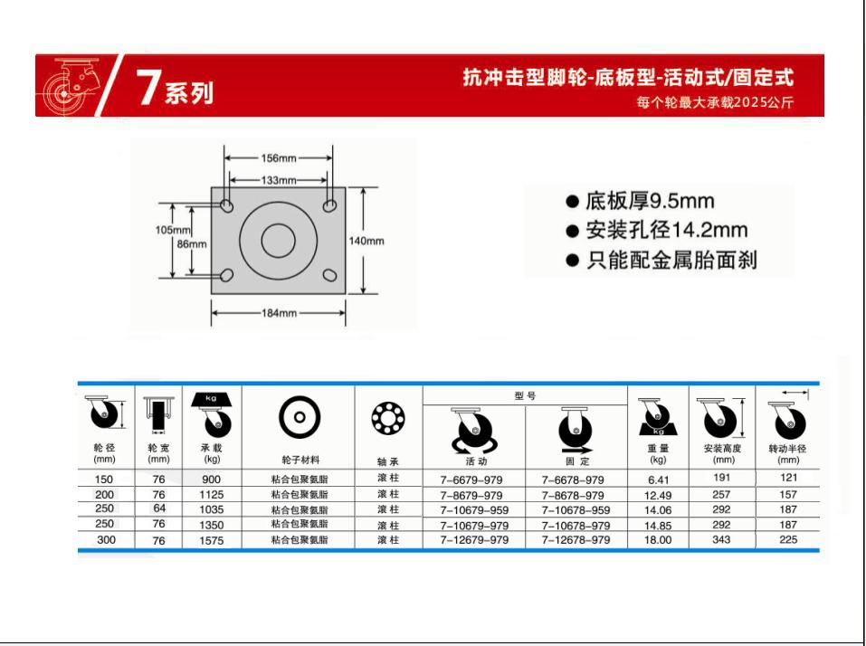 | 轮 径: | 6寸(150mm)、8寸(200mm))、10寸(250mm))、12寸(300mm) |