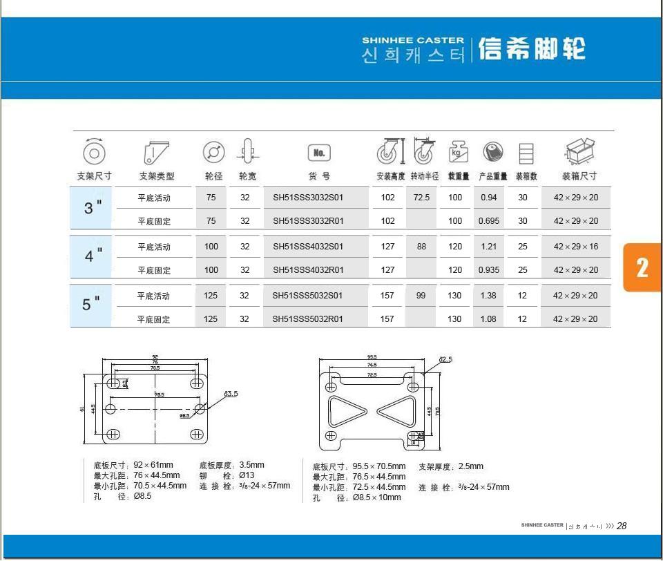 | 轮 径: | 3寸(75mm)、4寸(100mm)、5寸(125mm) |