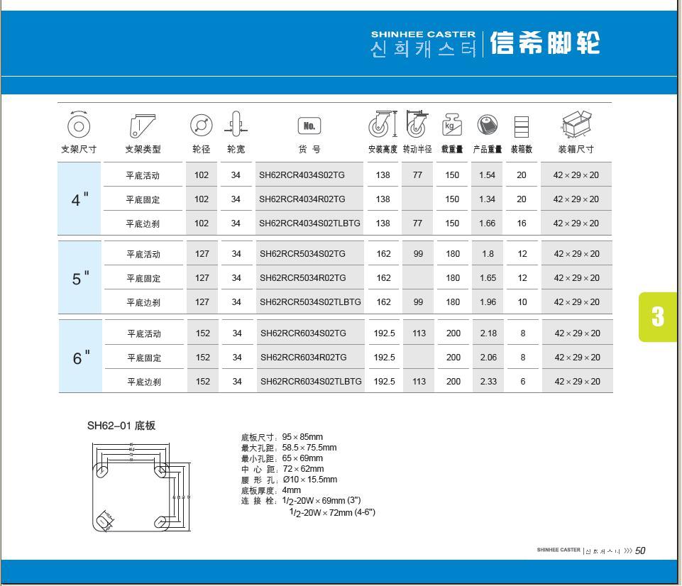 | 轮 径: | 4寸(100mm)、5寸(125mm)、6寸(150mm) |