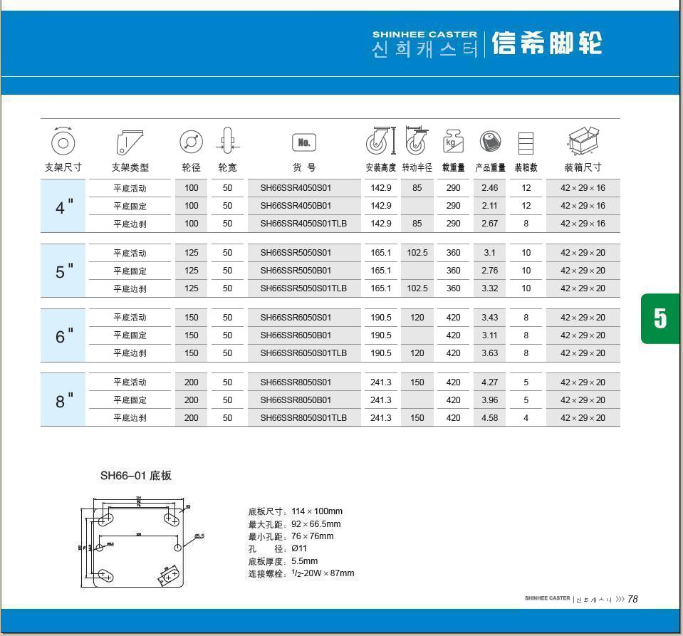 | 轮 径: | 4寸(100mm)、5寸(125mm)、6寸(150mm)、8寸(200mm) |