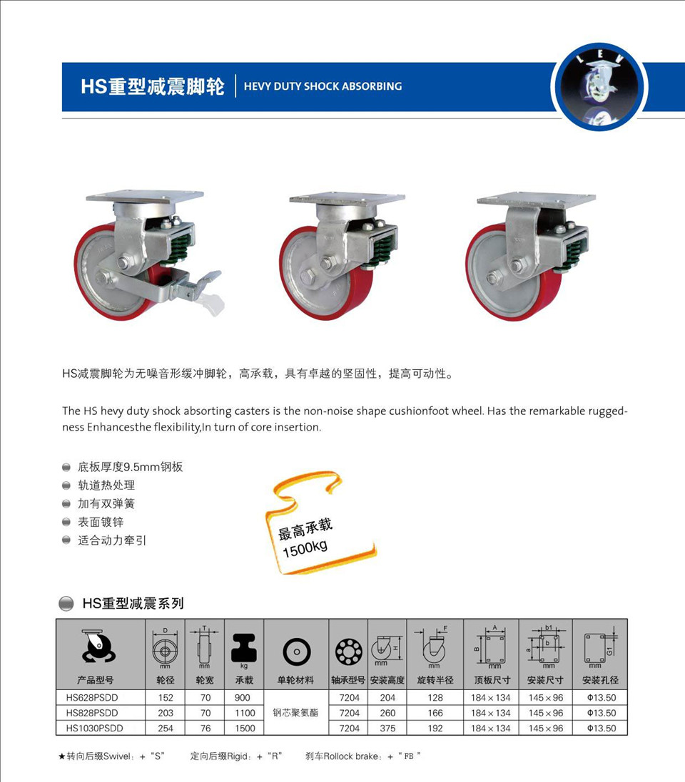 | 名 称: | HS弹簧轮万向-钢芯聚氨酯 |