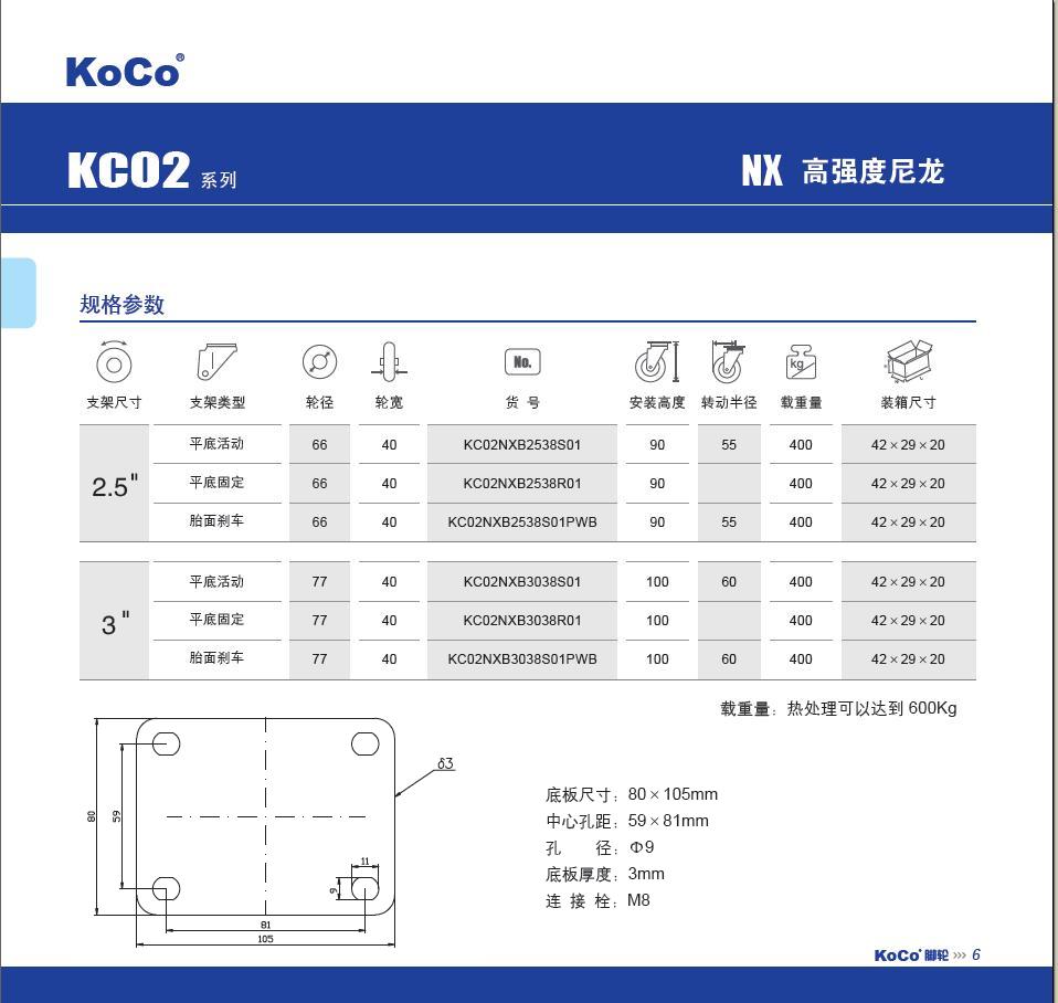 | 轮 径: | 2.5寸65mm)、3寸(75mm) |