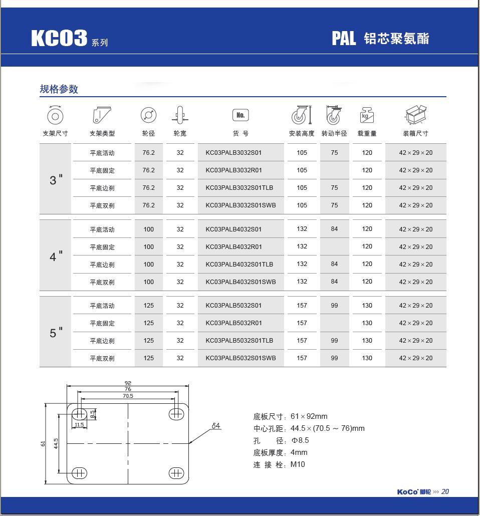 | 轮 径: | 3寸(75mm)、4寸(100mm)、5寸(125mm) |