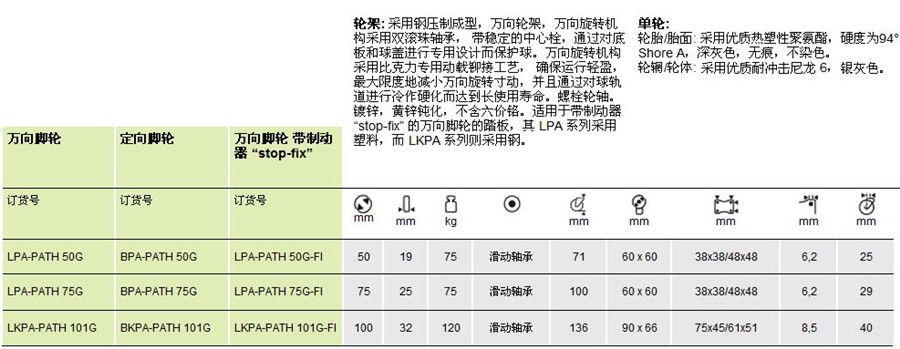 | 名 称: | 轻型热塑聚氨酯万向 |