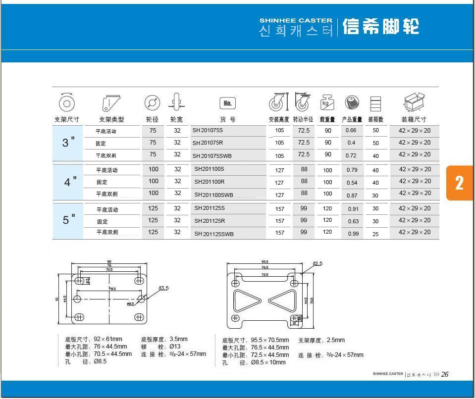 | 轮 径: | 3寸(75mm)、4寸(100mm)、5寸(125mm) |