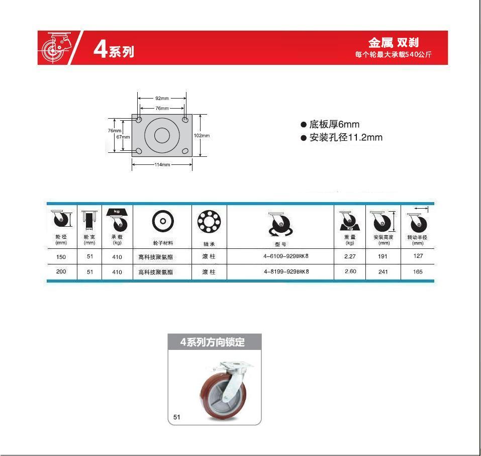 | 轮 径: | 4寸(100mm)、5寸(125mm)、6寸(150mm)、8寸(200mm)、 |