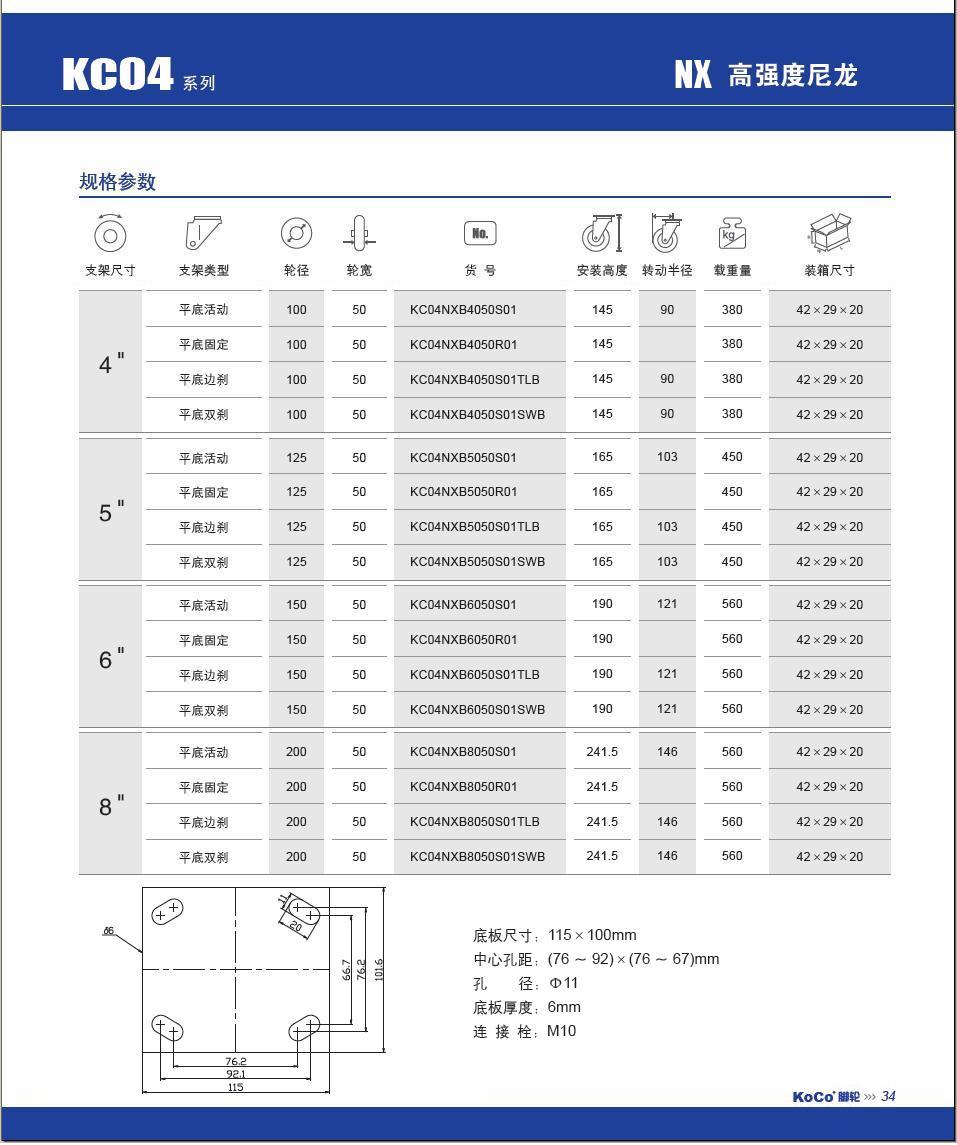 | 名 称: | 中重型尼龙万向 |