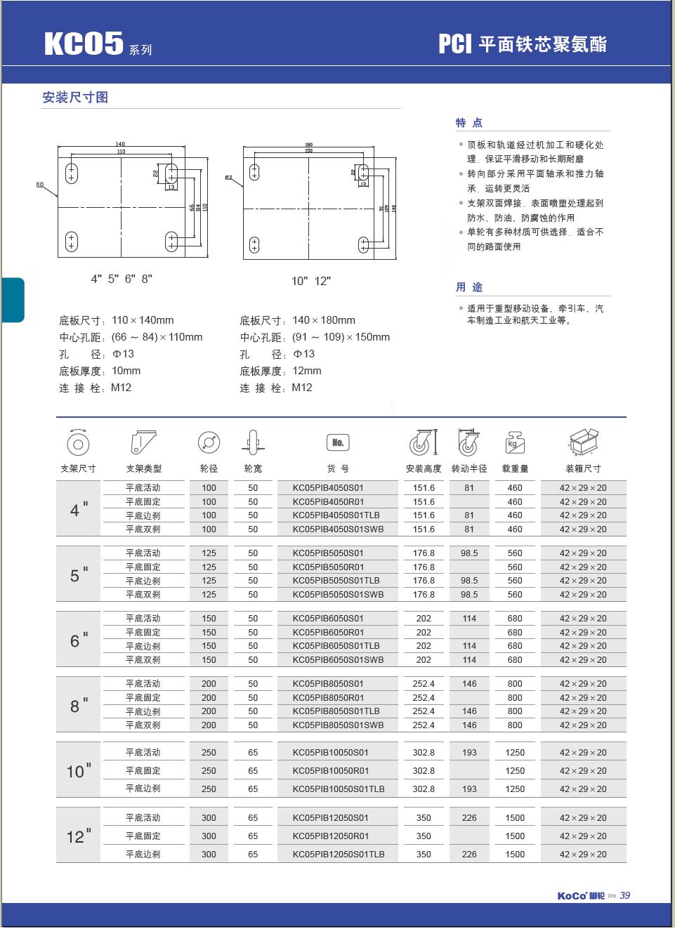 | 轮 径: | 4寸(100mm)、5寸(125mm)、6寸(150mm)、8寸(200mm)、10寸(250mm)、12寸(300mm) |