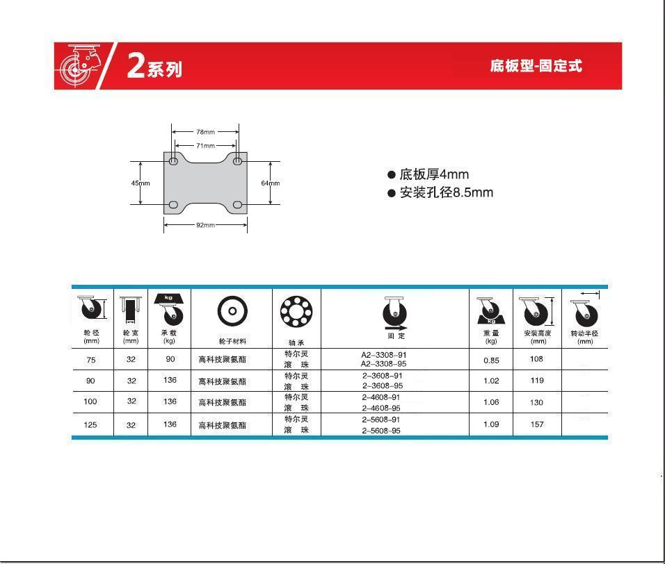 | 轮 径: | 2.5寸65mm)、3寸(75mm)、3.5寸(90mm)、4寸(100mm)、5寸(125mm)、 |