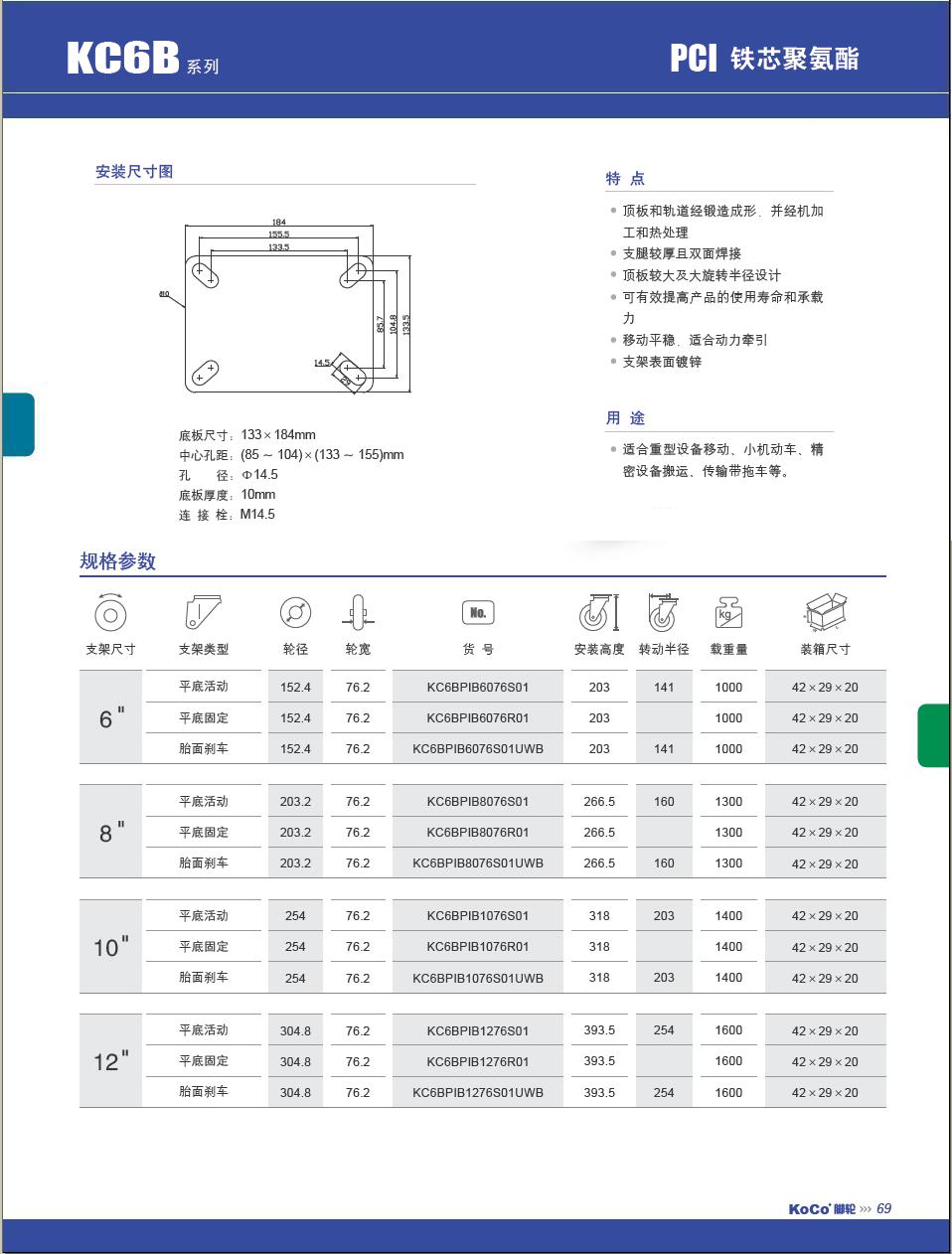| 轮 径: | 6寸(150mm)、8寸(200mm)、10寸(250mm)、12寸(300mm) |