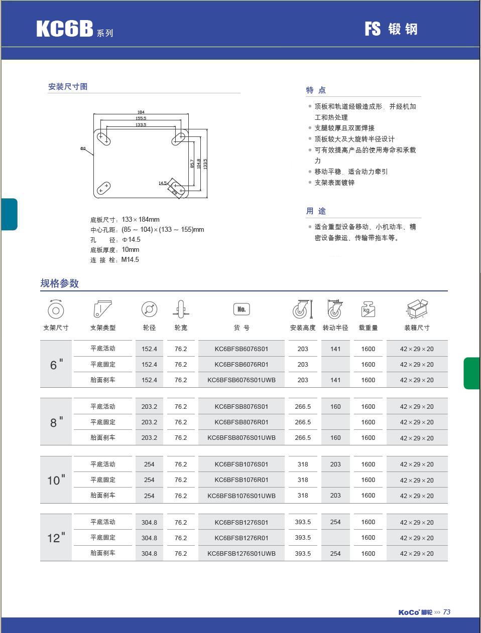 轮    径: 6寸(150mm)、8寸(200mm)、10寸(250mm)、12寸(300mm)