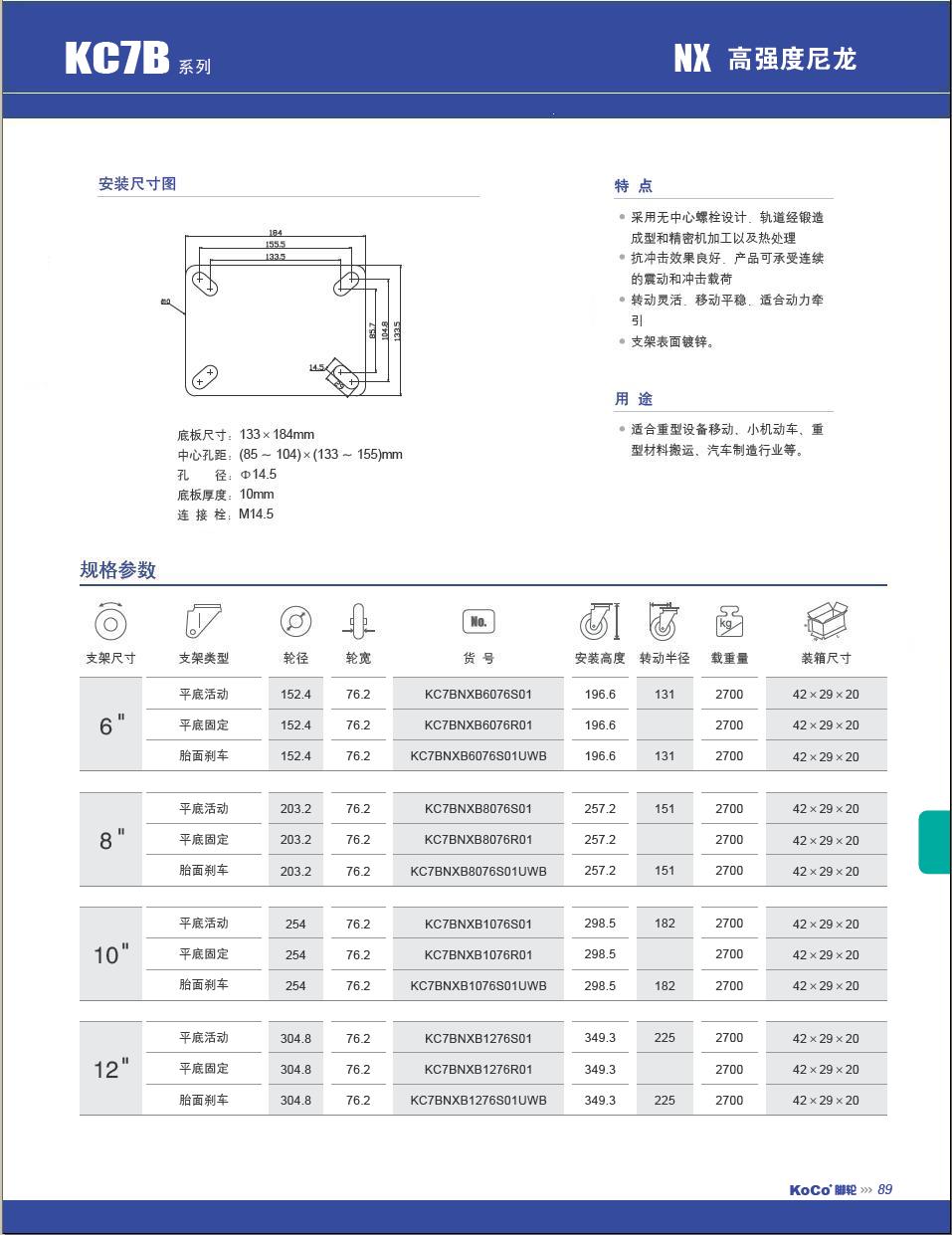 | 轮 径: | 6寸(150mm)、8寸(200mm)、10寸(250mm)、12寸(300mm) |