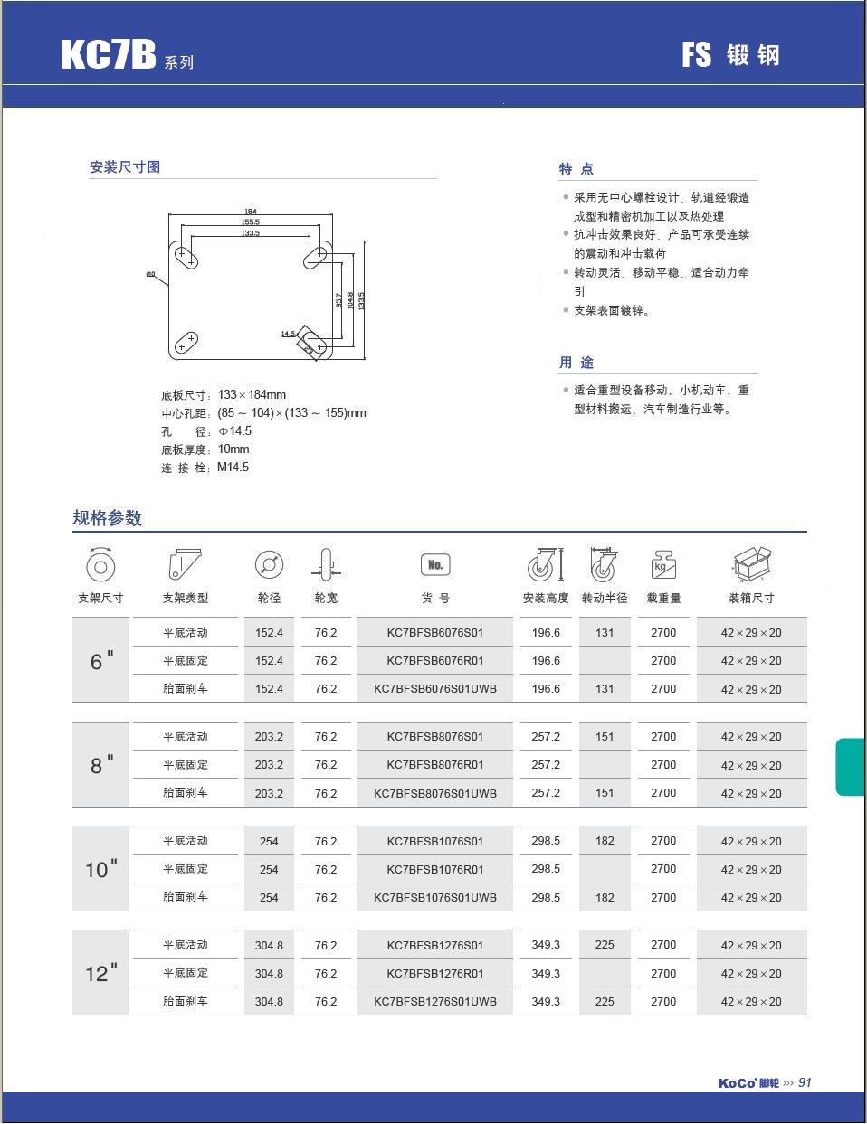 | 轮 径: | 6寸(150mm)、8寸(200mm)、10寸(250mm)、12寸(300mm) |