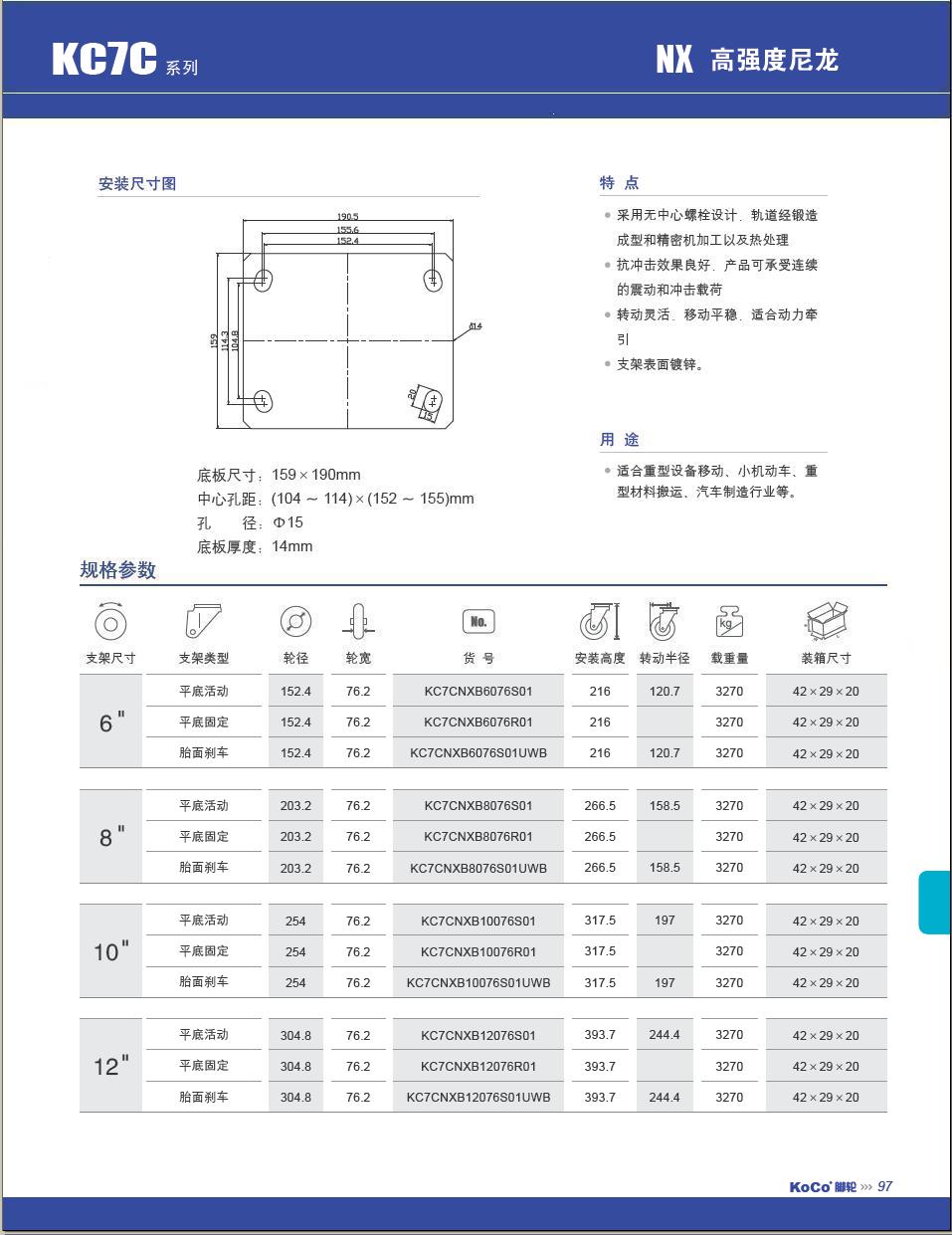 | 轮 径: | 6寸(150mm)、8寸(200mm)、10寸(250mm)、12寸(300mm) |