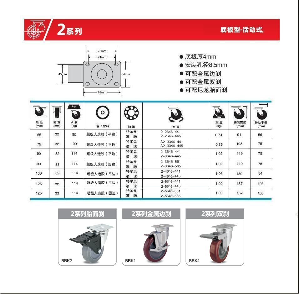 | 轮 径: | 2.5寸65mm)、3寸(75mm)、3.5寸(90mm)、4寸(100mm)、5寸(125mm) |