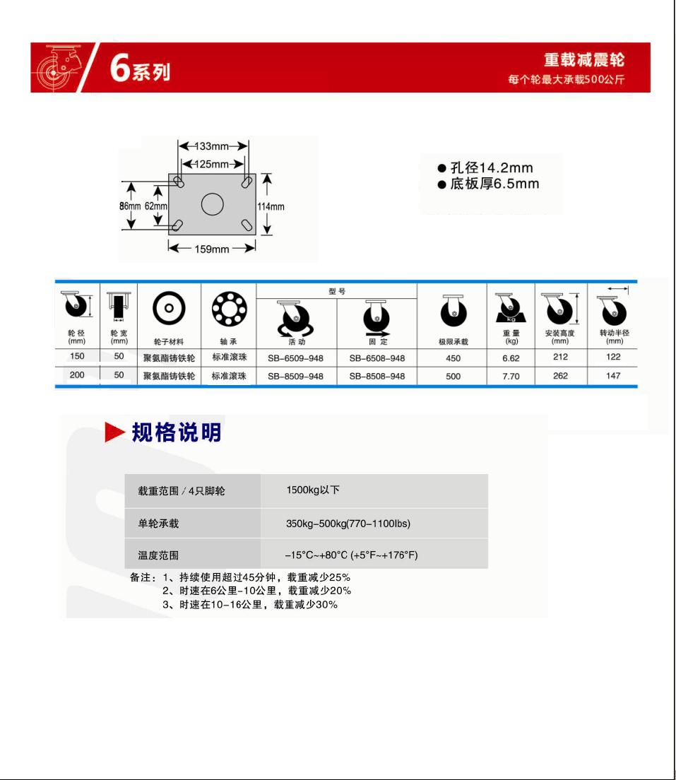 | 轮 径: | 6寸(150mm)、8寸(200mm) |