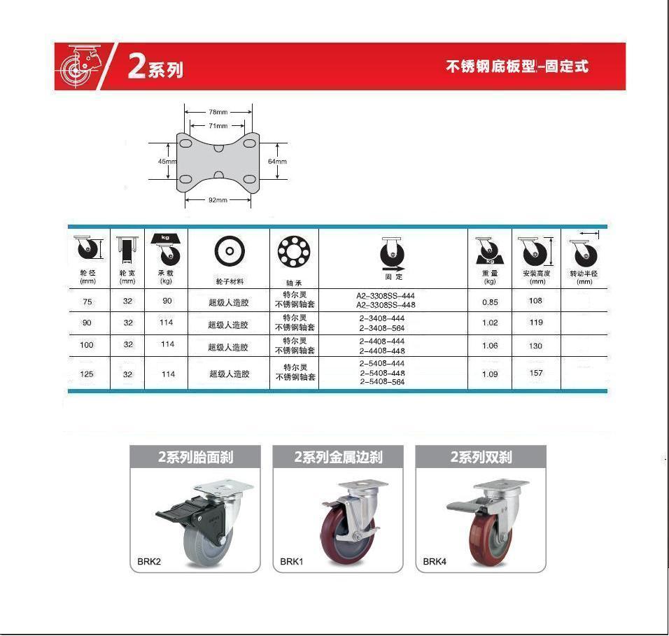 | 类 型: | 不锈钢脚轮(80-450Kg) |