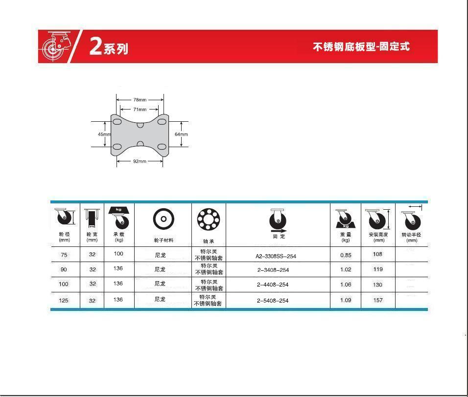 | 类 型: | 不锈钢脚轮(80-450Kg) |