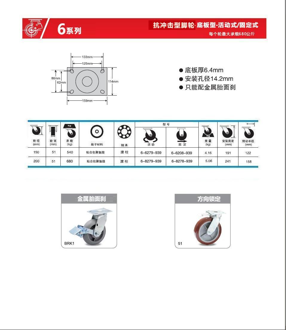 | 轮 径: | 6寸150mm)、8寸(200mm) |