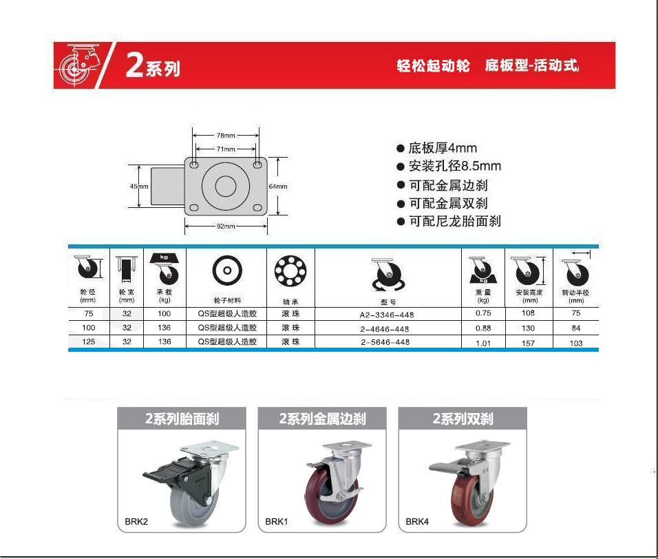 | 轮 径: | 3寸(75mm)、4寸(100mm)、5寸(125mm)、 |