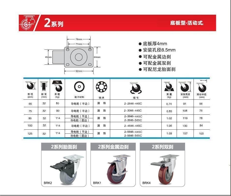 | 轮 径: | 2.5寸65mm)、3寸(75mm)、3.5寸(90mm)、4寸(100mm)、5寸(125mm)、 |