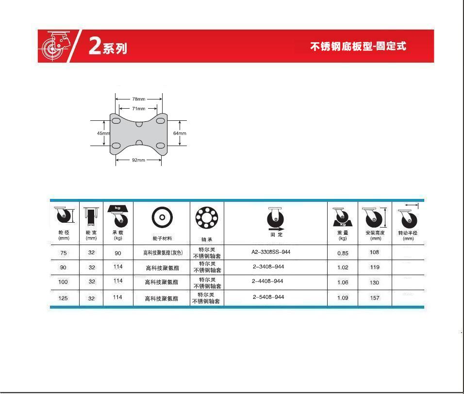 | 类 型: | 不锈钢脚轮(80-450Kg) |